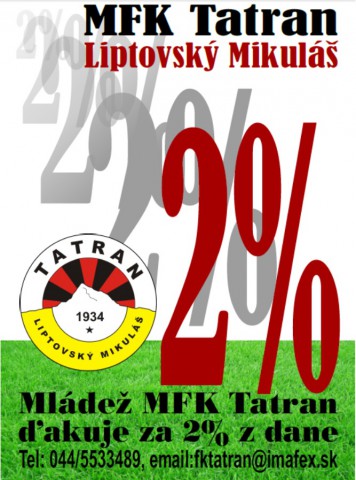 Darujte nám 2% z vašich daní a podporte tým našu mládež, pretože na výchove mladých futbalistov a futbalistiek nám záleží. Dokumenty na darovanie vašich daní nájdete v článku.