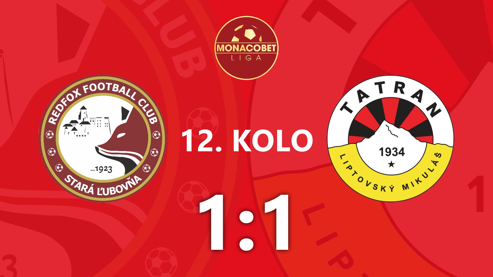 V rámci 12. kola MONACObet ligy sme vonku proti Starej Ľubovni remizovali 1:1.