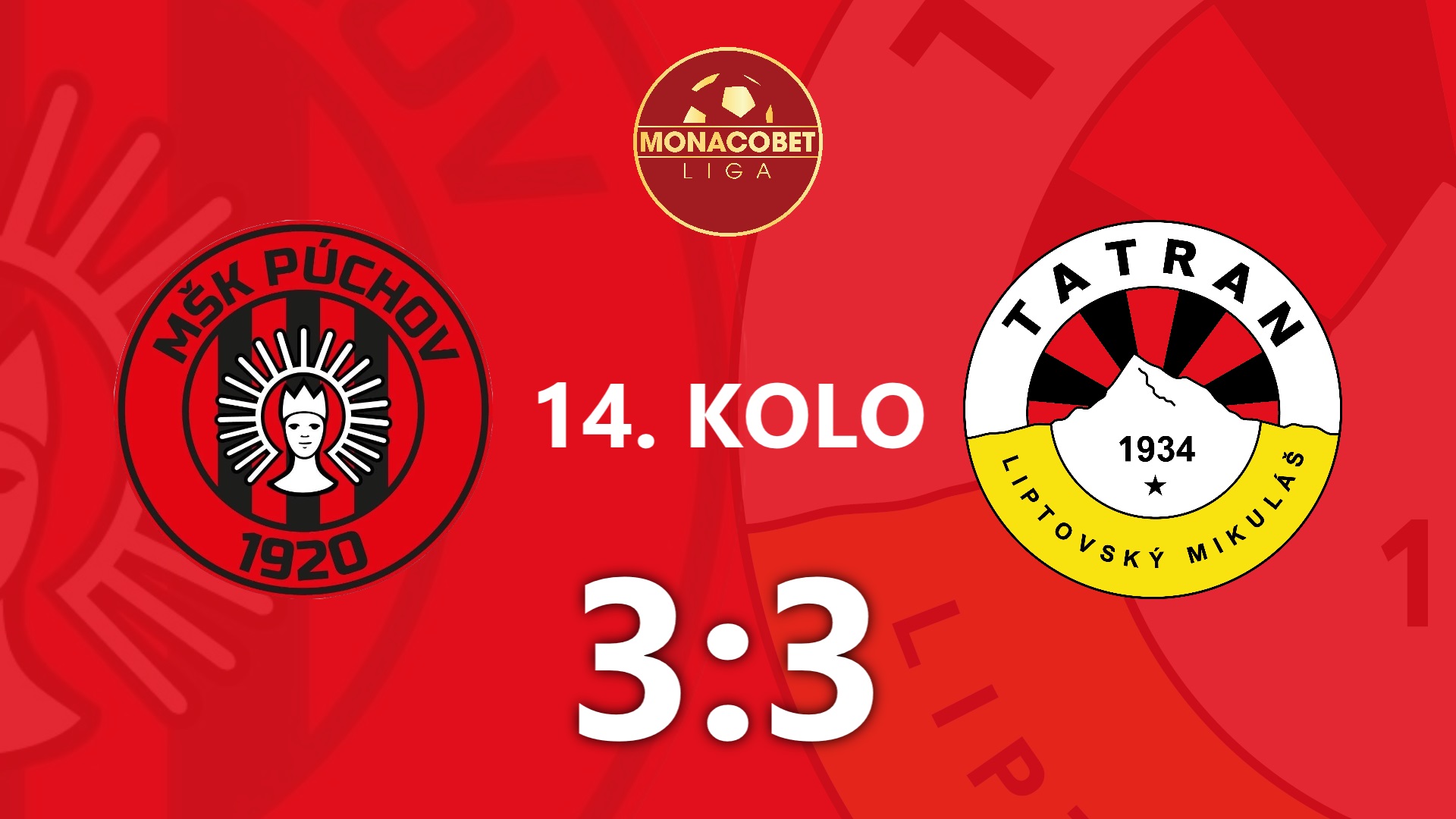 V rámci 14. kola MONACObet ligy sme vonku proti Púchovu remizovali 3:3.