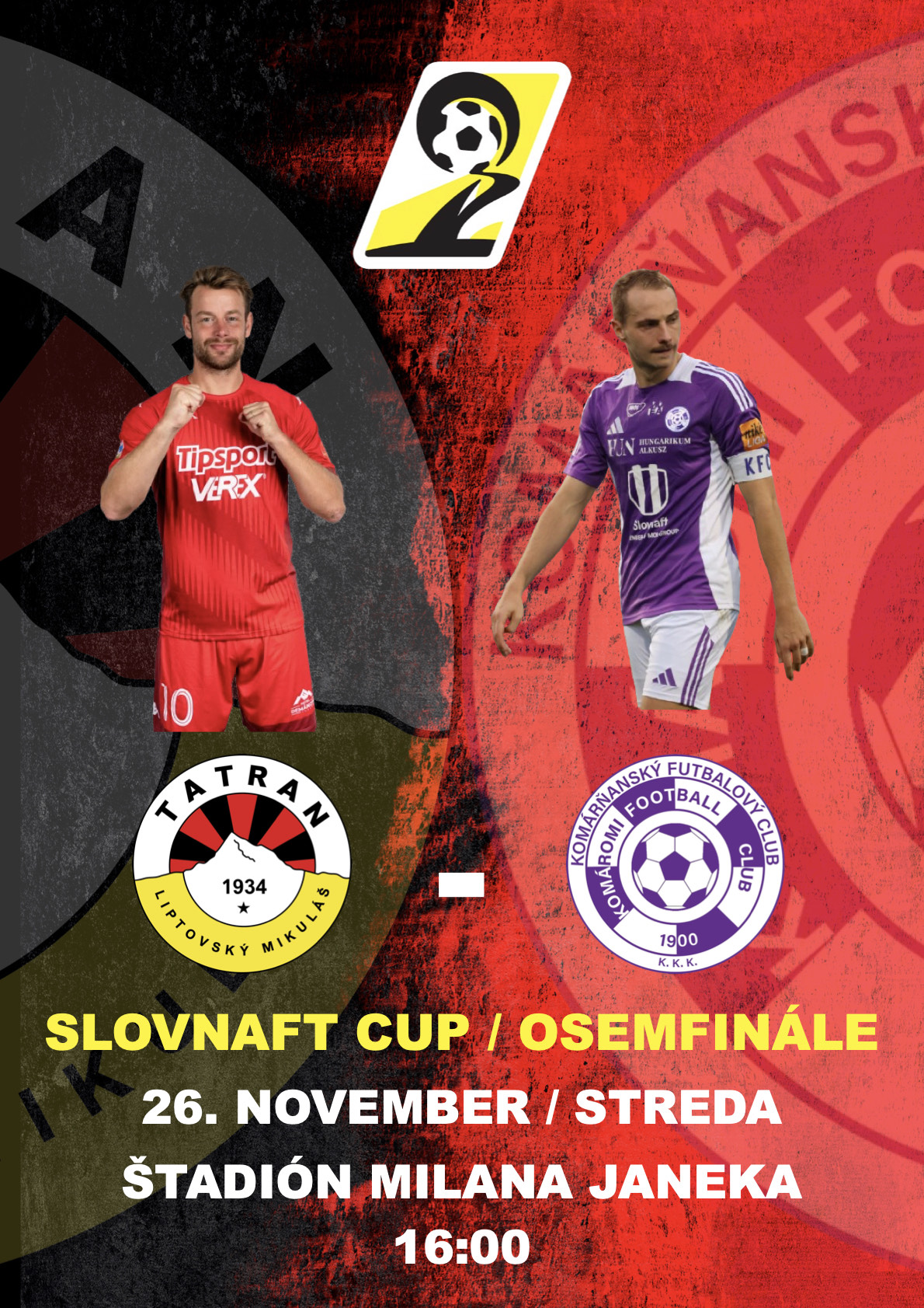 V osemfinále Slovnaft Cupu bude naším súperom KFC Komárno.