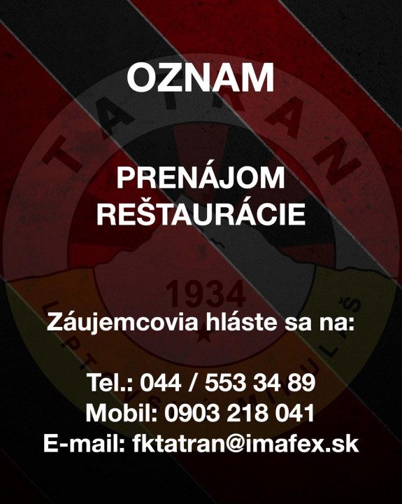 MFK Tatran Liptovský Mikuláš hľadá nájomcu na prenájom reštaurácie.