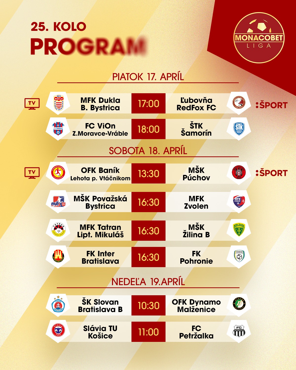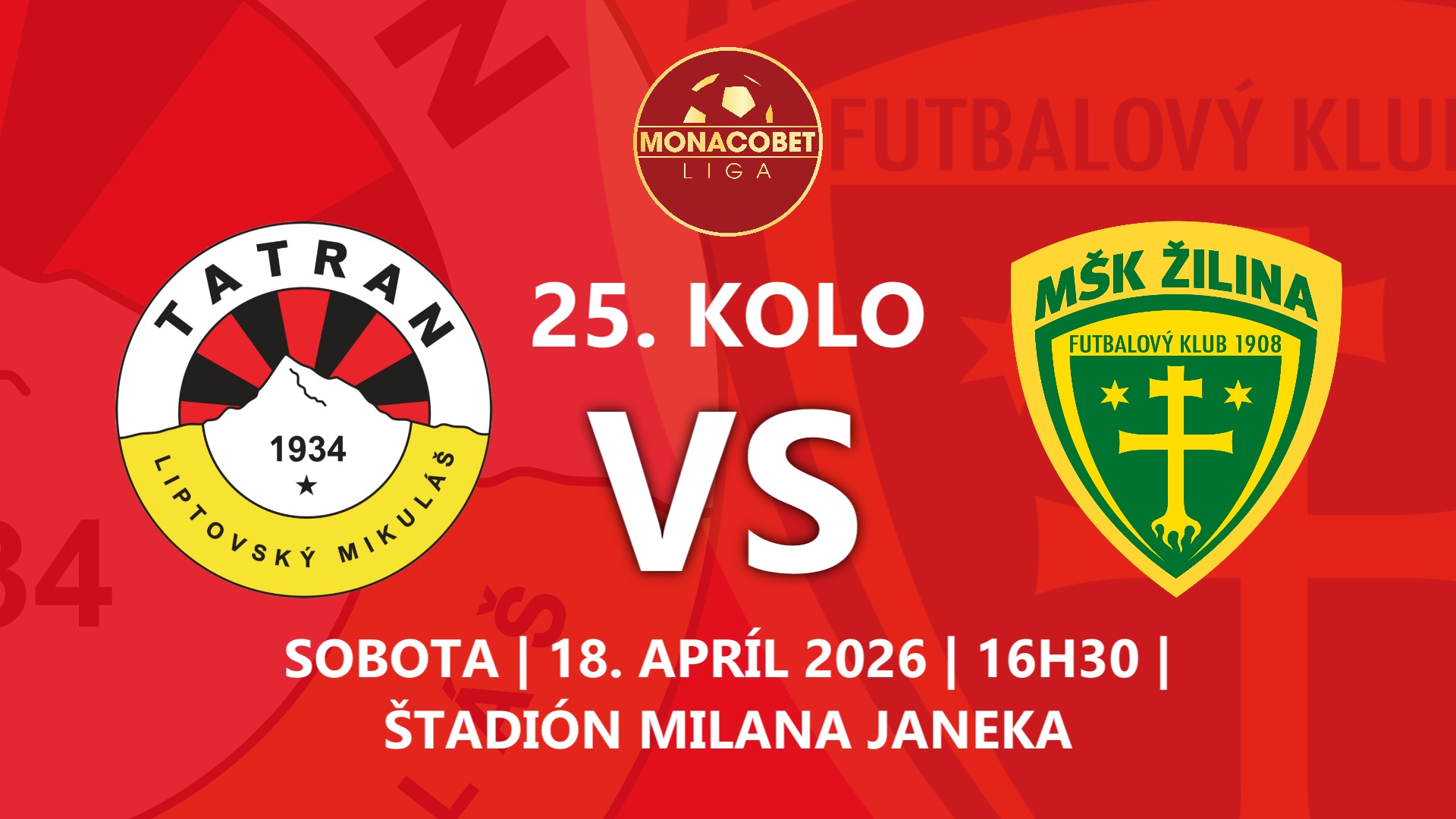 V rámci dvadsiateho piateho kola MONACObet ligy privítame doma Žilinu B.
