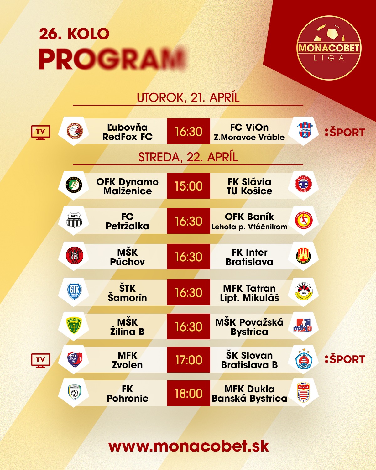 V rámci dvadsiateho šiesteho kola MONACObet ligy zavítame na pôdu FC ŠTK 1914 Šamorín.