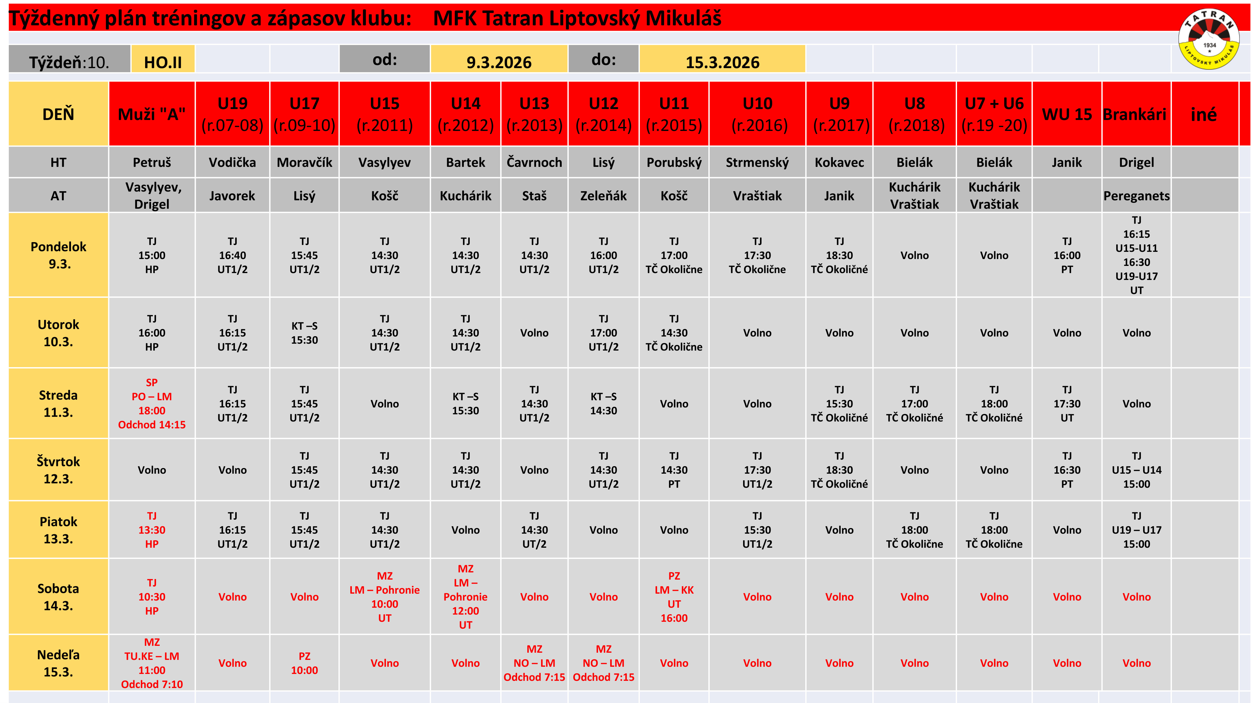 Týždenný plán od 9.3.2026 do 15.3.2026