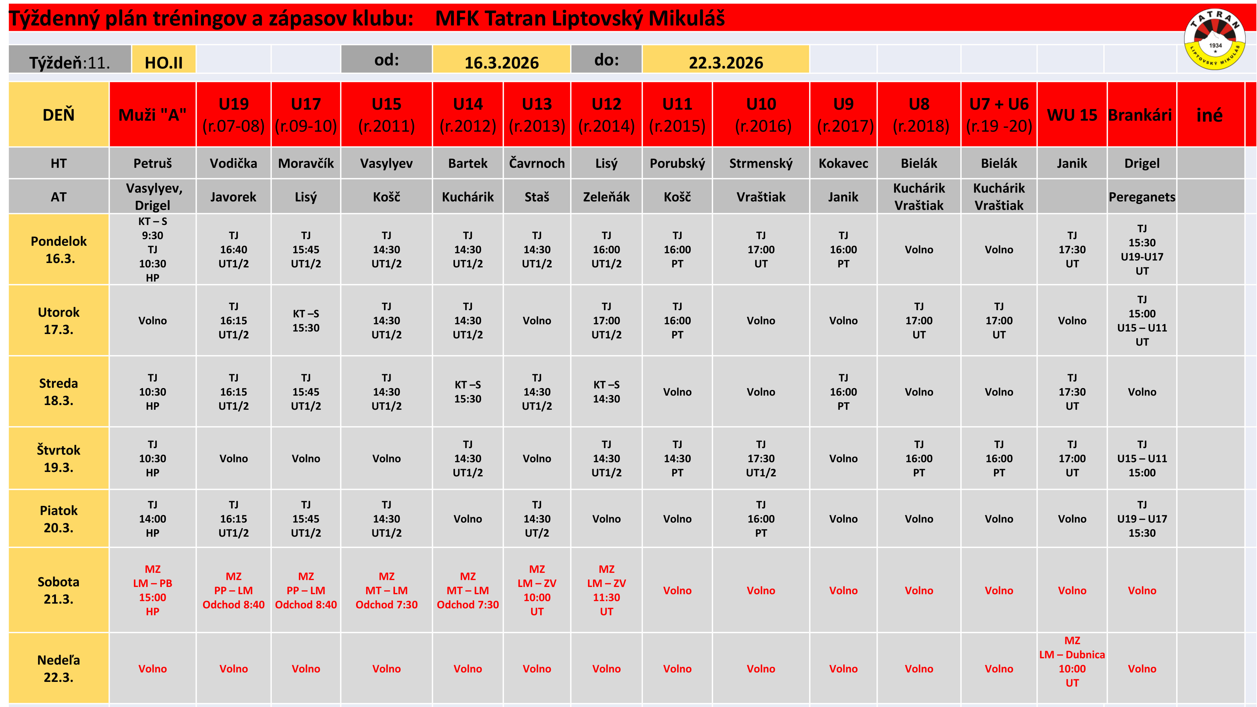 Týždenný plán tréningov a stretnutí