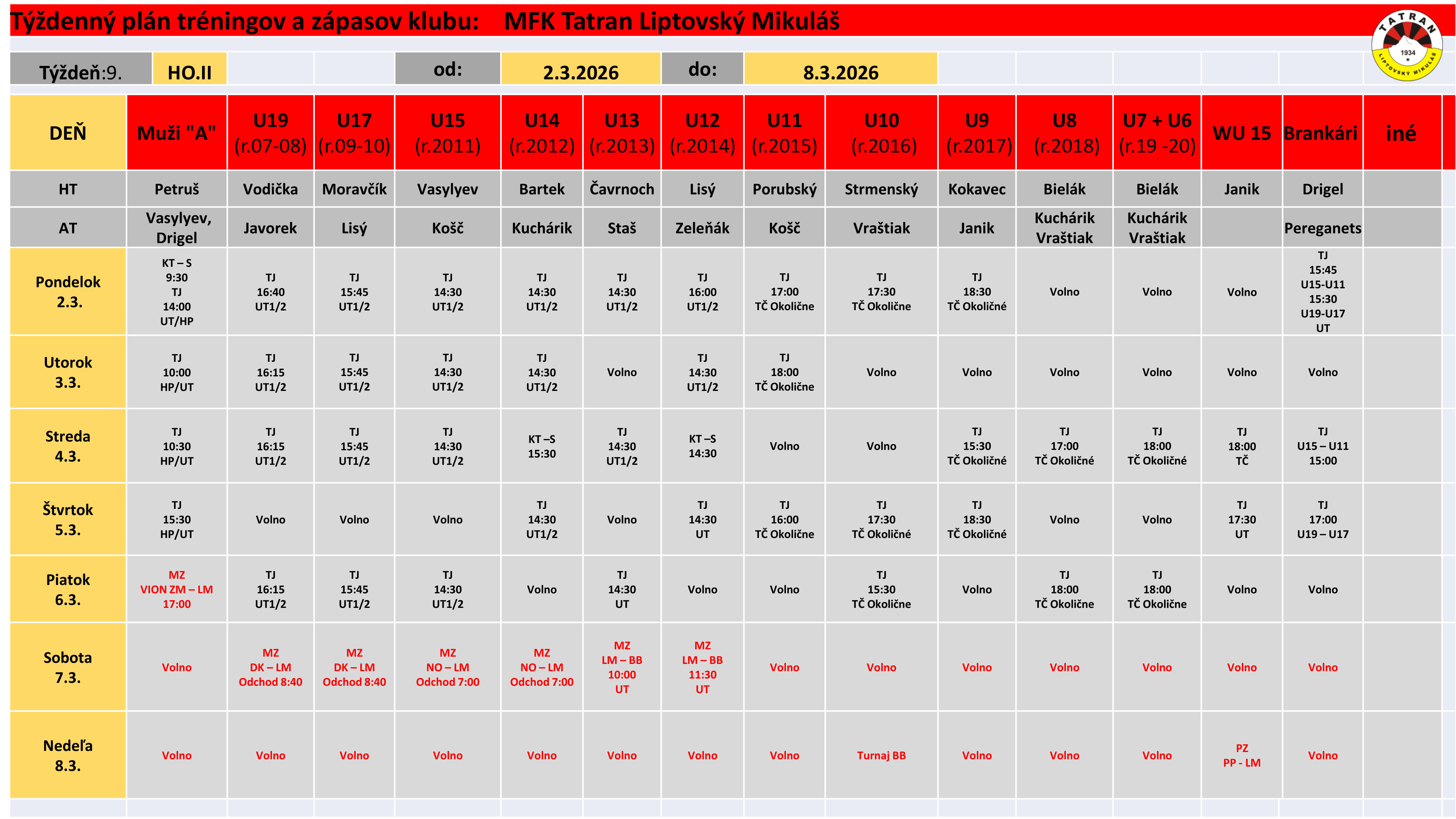 Týždenný plán od 2.3.2026 do 8.3.2026