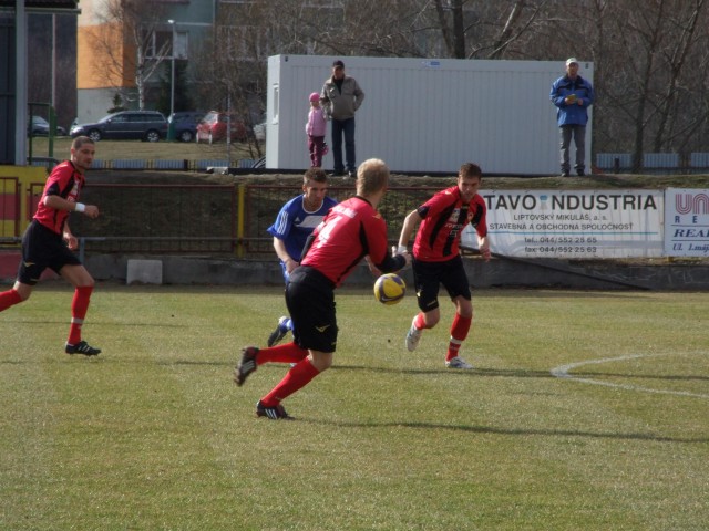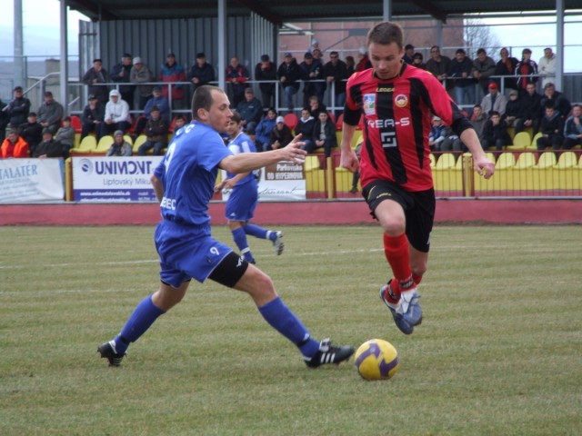 V 3. min sa do šance dostal domáci Vido, ale nemieril podľa svojich predstáv. O štyri minúty mali Mikulášania výhodu rohového kopu, ale strela Kapláňa išla nad. Onedlho bol opäť v šanci Vido, ale jeho strelu zo šestnástky obrana hostí zblokovala. Ten istý hráč nevyužil ani zaváhanie brankára Michaleka, ktorý zle odkopol loptu. V 14. min sa hosťujúci Labun šikovne presadil v strede pola, ale jeho strela išla vedľa bránky. Labun si chuť napravil už o dve minúty, keď skóroval z trestného kopu – 0:1.