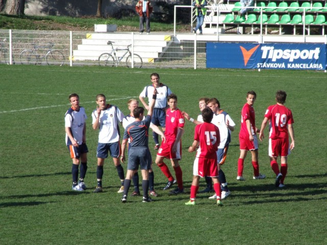 Po pol hodine hry sa na bránku hostí nebezpečne rútil Pisár, Šupej ho zastavil len za cenu faulu, ktorý rozhodca ohodnotil prísne a nášho hráča poslal po červenej karte pod sprchy. Domácim tento fakt nepomohol, o dve minúty bol v šanci Vido, ktorého strela skončila na tyčke. V 34. min Geri po rohovom kope hlavičkoval nad. V 41. min centroval Bella, ale Bezák jeho center hlavou nezachytil. V závere polčasu vyskúšal pozornosť Šavola Pisár.